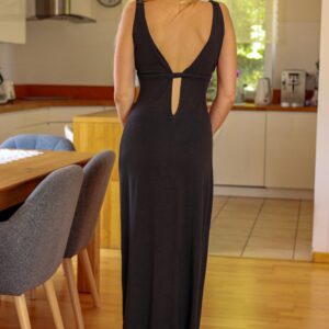 Senai to długa wiskozowa sukienka idealna na ciepłą wiosnę i lato. Charakteryzuje ją głęboki dekolt w kształcie litery V z przodu i na plecach oraz marszczenia na biuście, które przechodzą w ramiączka. Zwiewna sukienka z oddychającej wiskozy o luźnym fasonie gwarantuje komfort nawet w najbardziej upalne letnie dni.