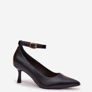 Szpilki czółenka damskie wykonane z wysokiej jakości eko skóry to połączenie klasyki i kobiecego wdzięku. Model zachwyca eleganckim fasonem ze szpiczastym noskiem, który optycznie wysmukla nogi i dodaje sylwetce lekkości. Buty posiadają regulowany pasek ze sprzączką, który nie tylko stanowi ozdobny akcent, ale także zapewnia idealne dopasowanie do stopy i stabilność podczas chodzenia. Smukła szpilka pięknie podkreśla kobiecą sylwetkę, dodając jej elegancji i pewności siebie. Te czółenka doskonale sprawdzą się zarówno w eleganckich stylizacjach biurowych, jak i na specjalne okazje do sukienek, spódnic czy klasycznych garniturów.