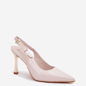 Lakierowane eleganckie szpilki z odkrytą piętą to połączenie klasyki i nowoczesności. Szpiczaste noski optycznie wysmuklają nogi, a zapinane na regulowany pasek ze sprzączką, zapewniają idealne dopasowanie i stabilność. Te szpilki doskonale sprawdzą się na specjalne okazje, łącząc elegancję z subtelnym, ale wyrazistym stylem. Idealne do wieczorowych stylizacji, dodają szyku i pewności siebie.